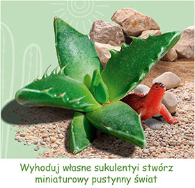 Roślina, którą dzieci wyhodują, to bezpieczny kaktus – choć wygląda egzotycznie i jego listki tworzą kształt przypominający otwarte paszcze tygrysa, jest on całkowicie łagodny w dotyku i nie stanowi zagrożenia dla małych rąk. Dołączona do zestawu bogato ilustrowana instrukcja prowadzi młodego odkrywcę krok po kroku przez cały proces – od zasiania nasion i odpowiedniego ułożenia ziemi oraz piasku, aż po obserwację wzrostu i pielęgnację kaktusa w mini-szklarnianej atmosferze.